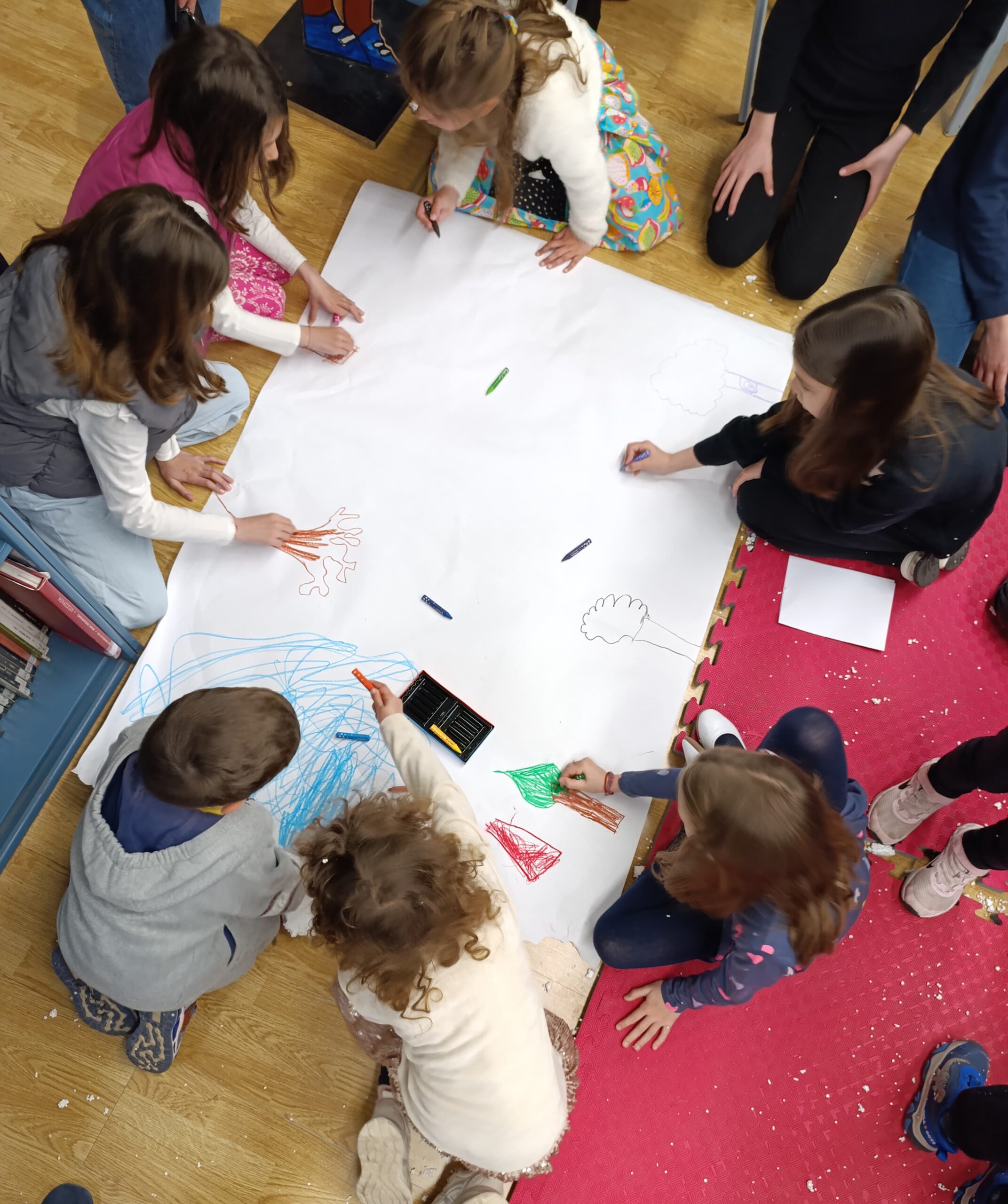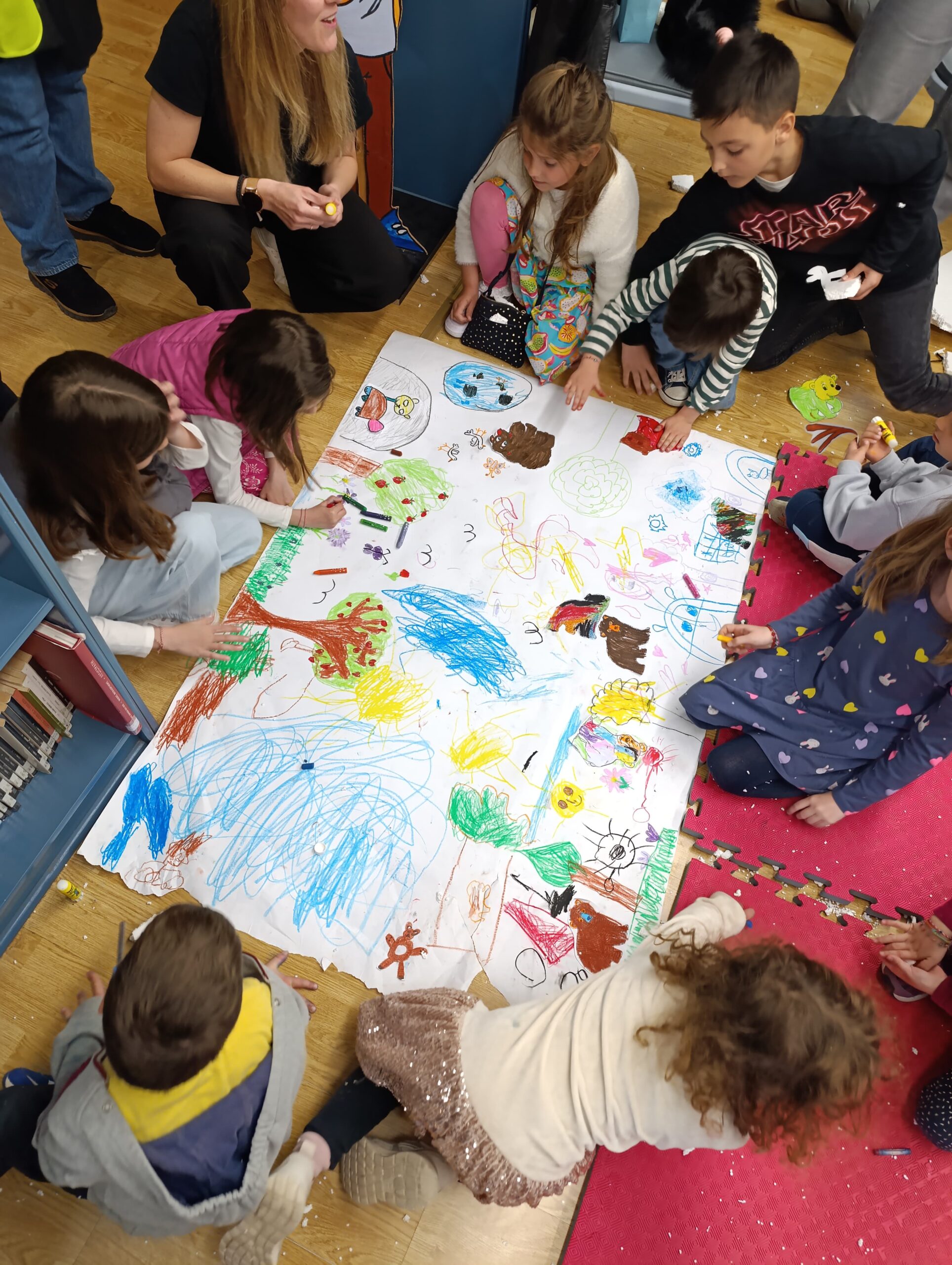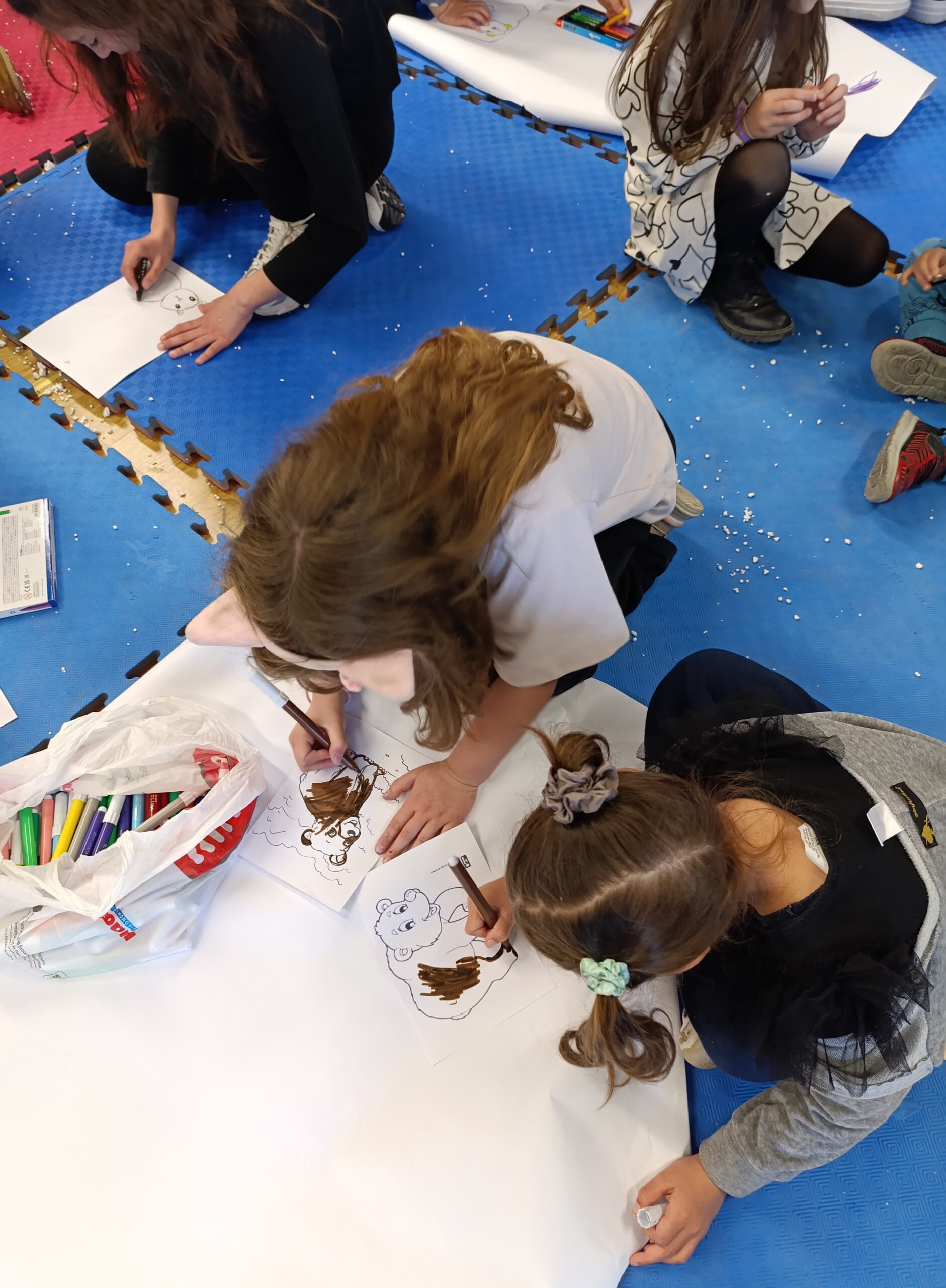 Μετά την αφήγηση του παραμυθιού, τα παιδιά συμμετείχαν σε ένα χαρούμενο διαδραστικό παιχνίδι με τίτλο «Κάνε ό,τι κάνω», γελώντας και παίζοντας μιμούμενα κινήσεις των συγγραφέων. Στη συνέχεια χωρίστηκαν σε δύο ομάδες, όπου με πινέλα, μαρκαδόρους και ανεξάντλητη έμπνευση, ζωγράφισαν το βουνό και τις πολικές αρκούδες της ιστορίας, δημιουργώντας πολύχρωμες εικόνες.