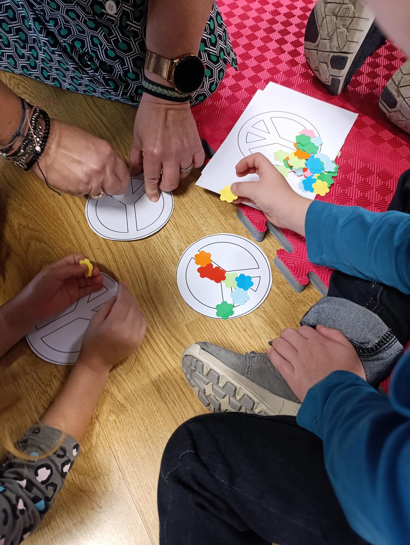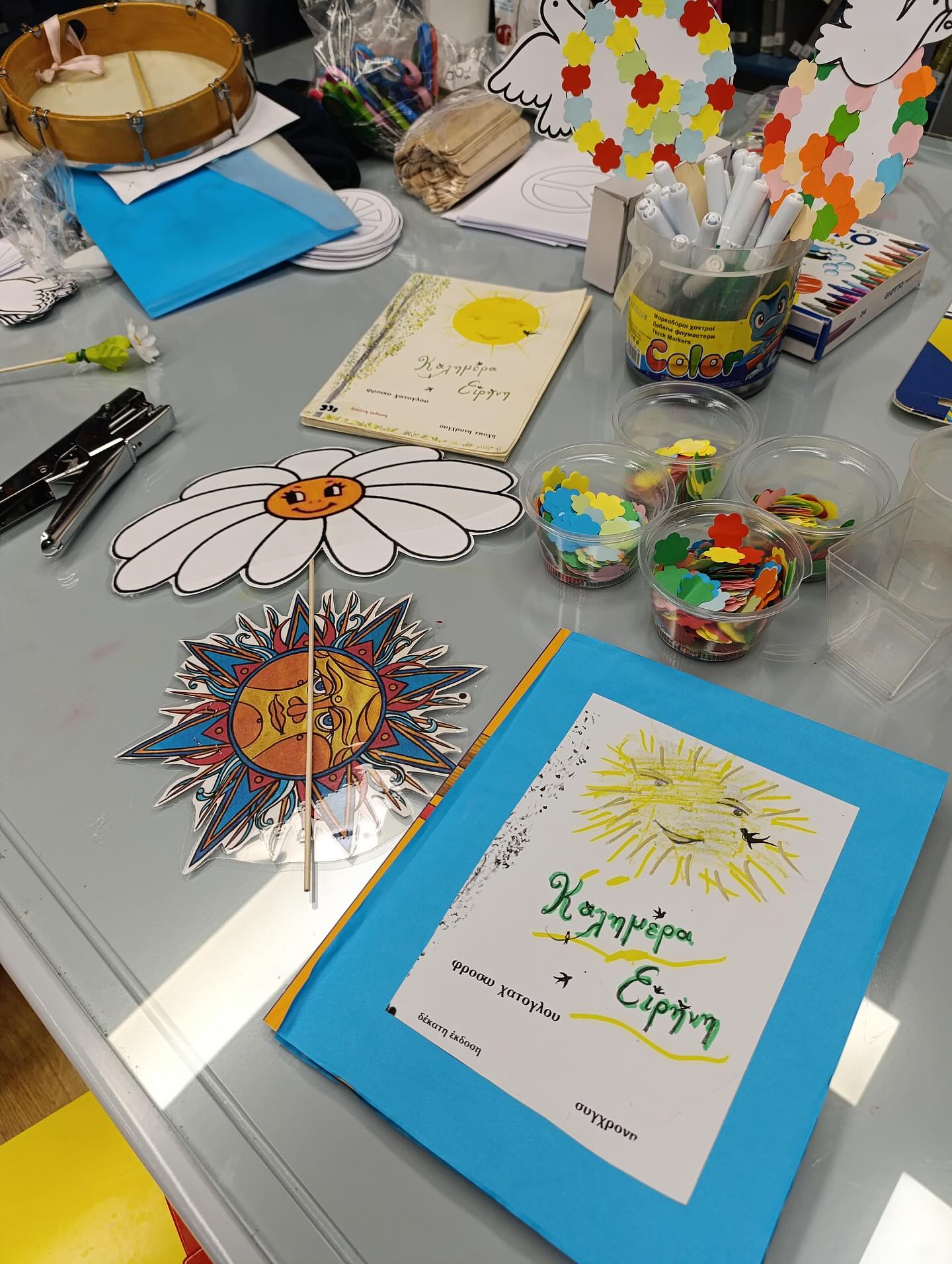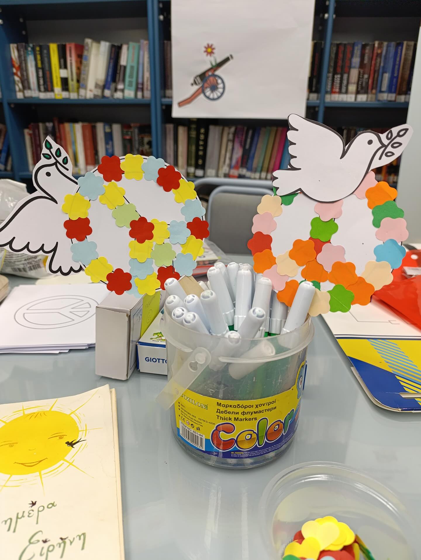 Η δράση συνεχίστηκε με τη δραματοποίηση του παραμυθιού μέσα από ένα διαδραστικό παιχνίδι στο οποίο τα παιδιά συμμετείχαν ενεργά, εκφράζοντας τα συναισθήματά τους και δημιουργώντας χειροτεχνίες με θέμα το παγκόσμιο σύμβολο της ειρήνης.