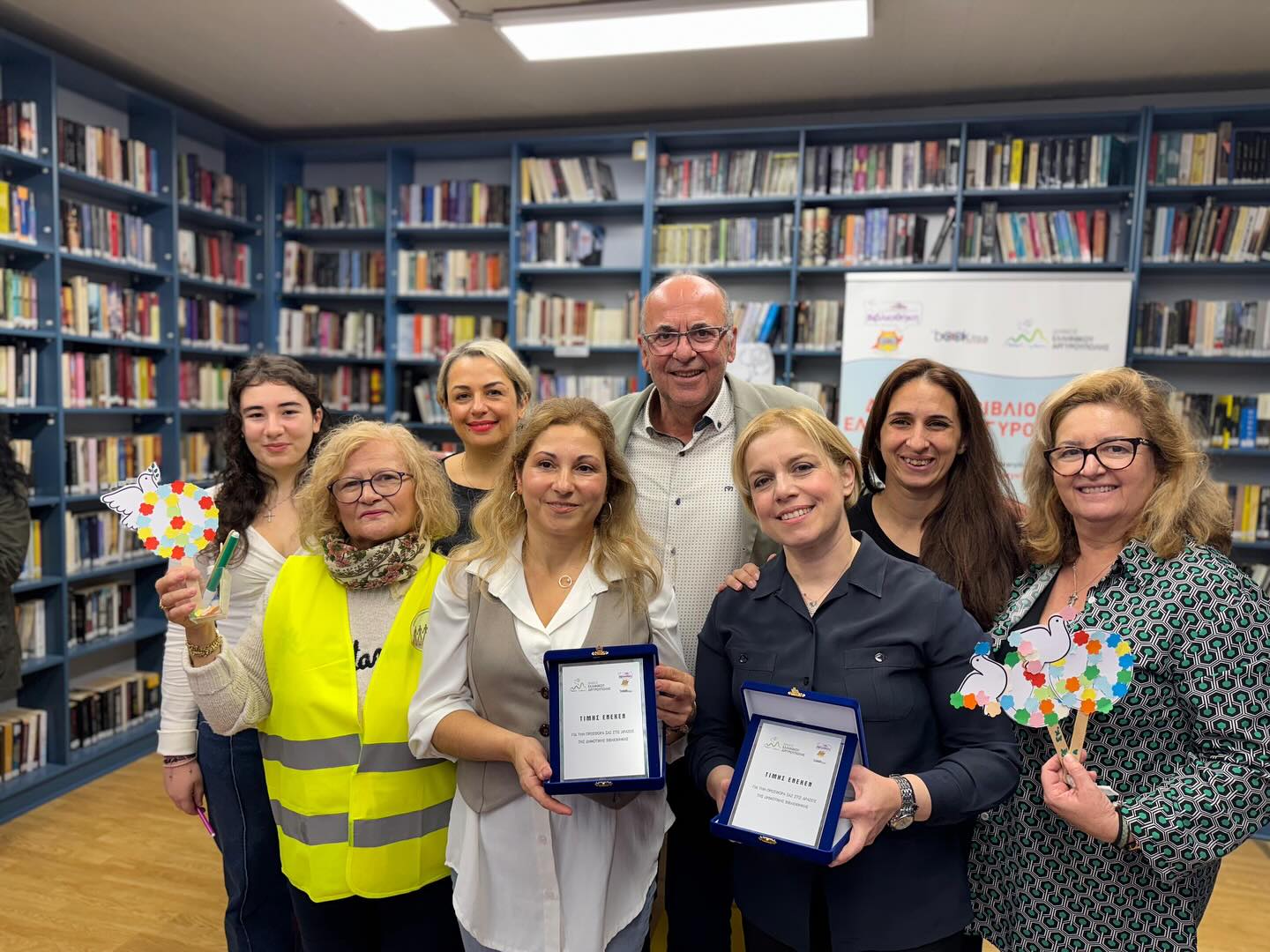 Στο τέλος της εκδήλωσης, ο κ. Ζέλιος απένειμε τιμητικές πλακέτες στις δύο εκπαιδευτικούς για τη συμμετοχή τους στις δράσεις της Δημοτικής Βιβλιοθήκης και ευχαρίστησε επίσης θερμά το Τμήμα Πολιτισμού και το Σώμα Εθελοντών για τη σημαντική συμβολή τους.