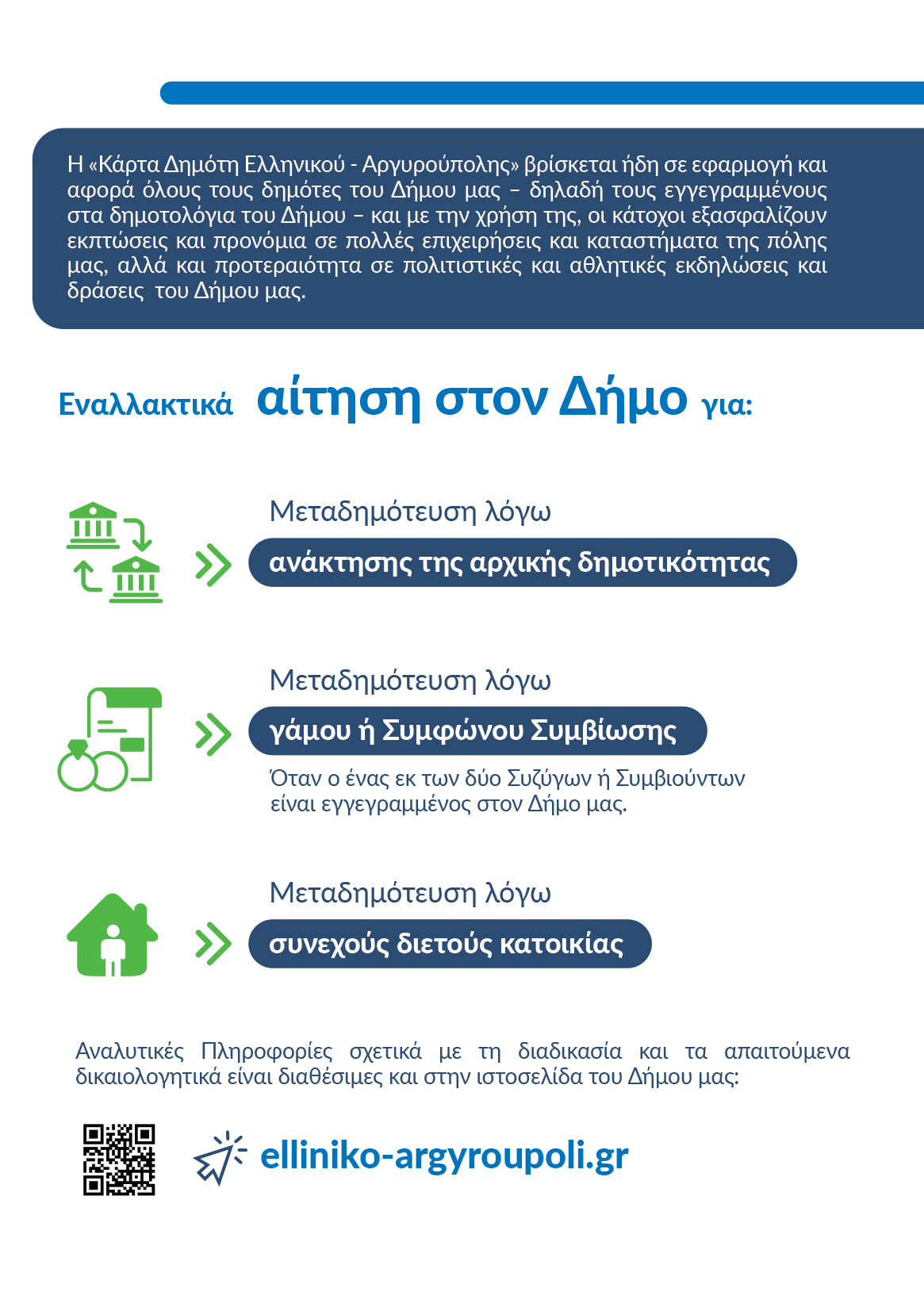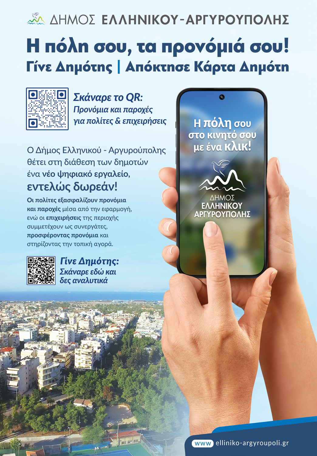 «ΚΑΡΤΑ ΔΗΜΟΤΗ»: Κατεβάστε το νέο application του Δήμου Ελληνικού – Αργυρούπολης με πολλά προνόμια για όλους τους δημότες