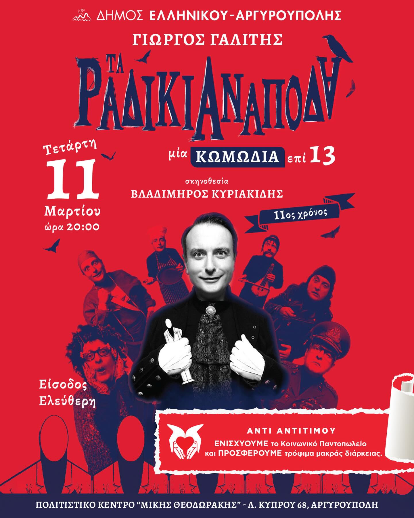 Θεατρική Παράσταση «Τα Ραδίκια Ανάποδα» την Τετάρτη 11 Μαρτίου στο Πολιτιστικό Κέντρο «Μίκης Θεοδωράκης»