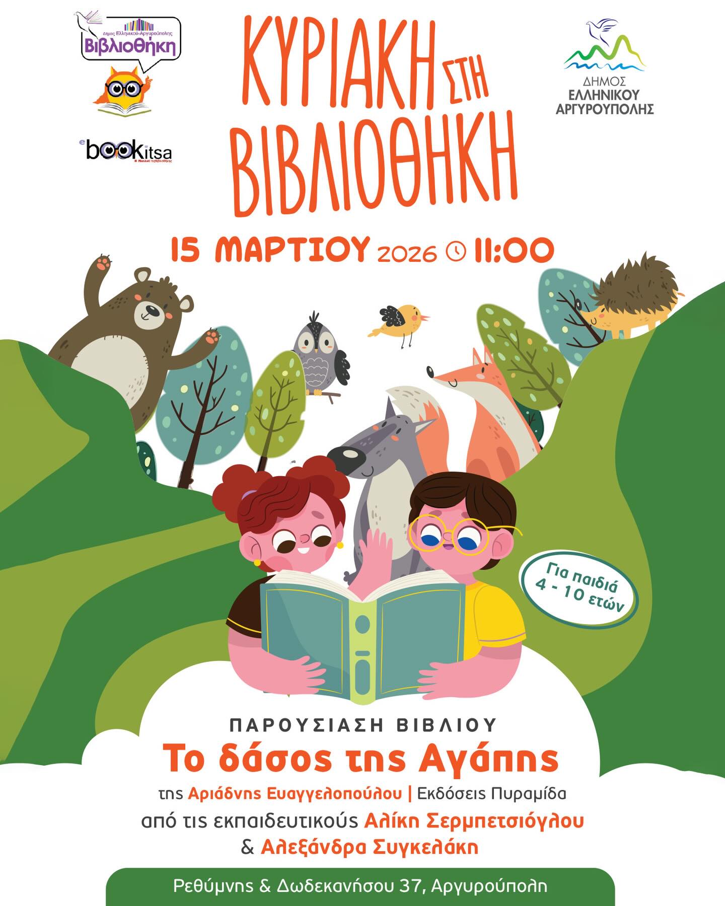 Κυριακή στη Βιβλιοθήκη – Η δράση συνεχίζεται – Παρουσίαση Παιδικού Βιβλίου «Το δάσος της Αγάπης» την Κυριακή 15 Μαρτίου στις…
