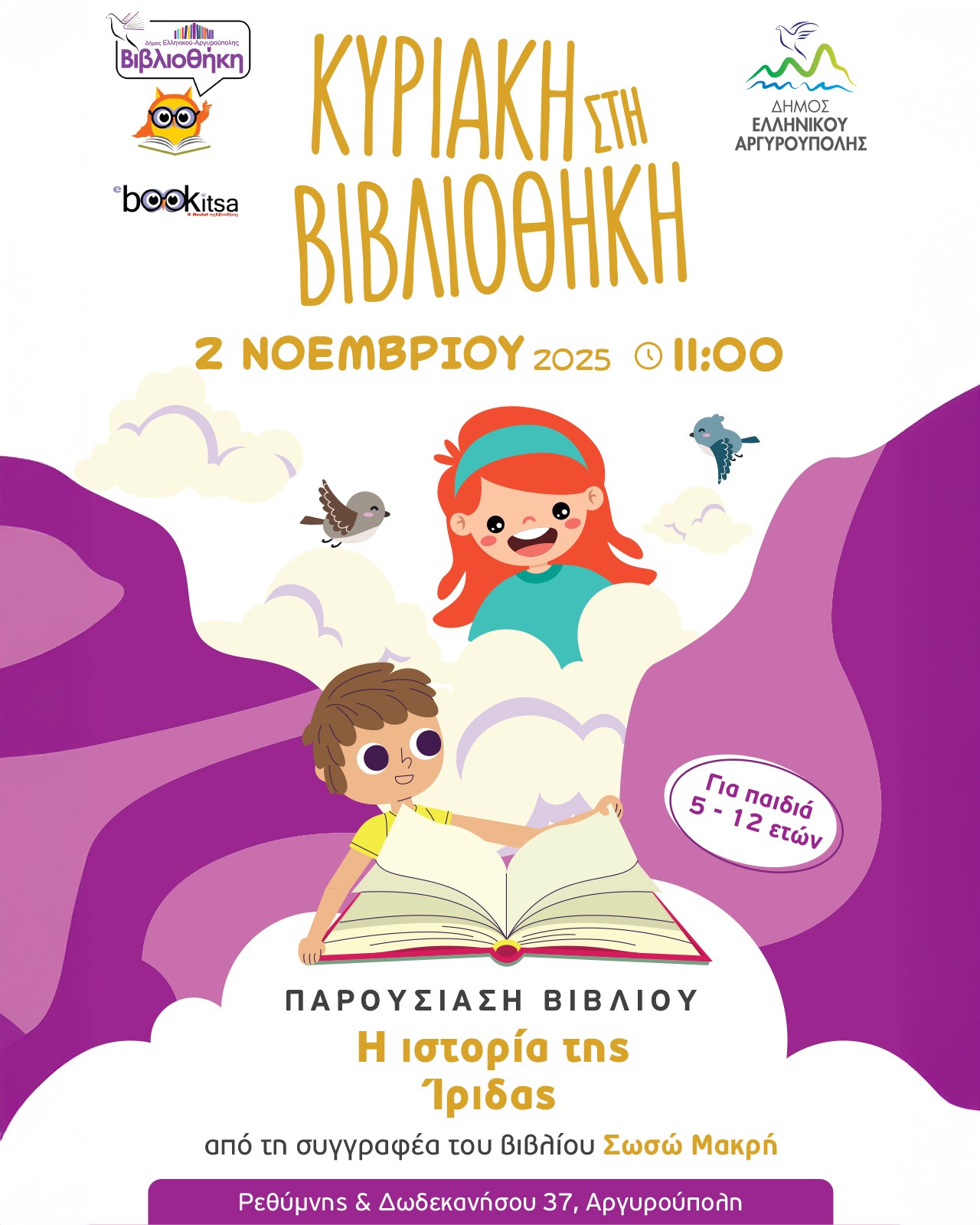 «Κυριακή στη Δημοτική Βιβλιοθήκη» – Παρουσίαση βιβλίου «Η ιστορία της Ίριδας» της Σωσώς Μακρή την Κυριακή 2 Νοεμβρίου