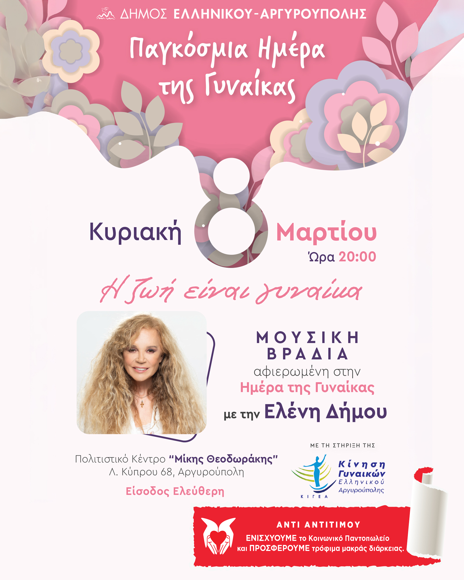 Κυριακή 8 Μαρτίου: Μουσική Βραδιά για την Παγκόσμια Ημέρα της Γυναίκας με την Ελένη Δήμου