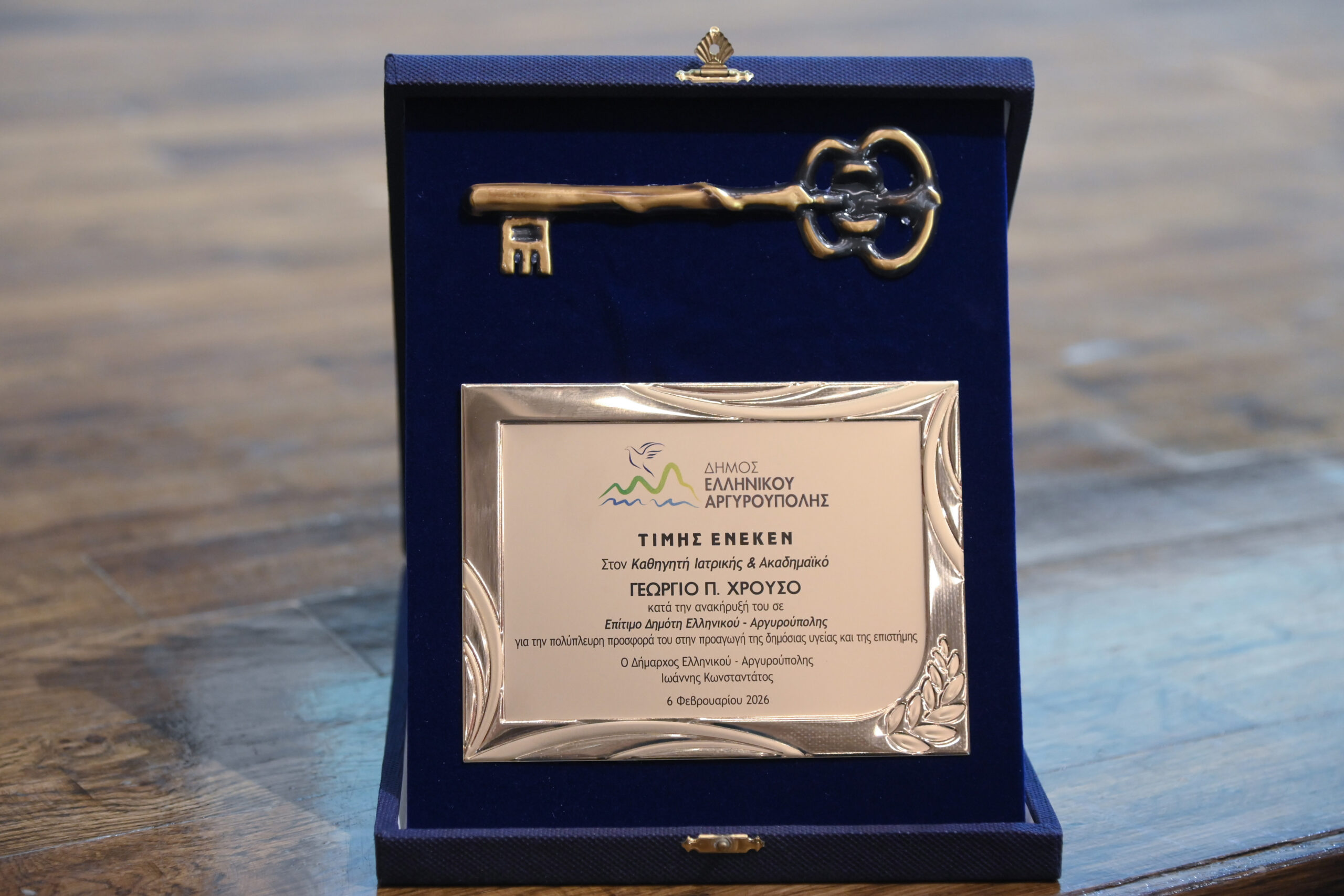 Eπίτιμος Δημότης Ελληνικού – Αργυρούπολης ο διακεκριμένος Καθηγητής Ιατρικής Γεώργιος Π. Χρούσος ως ένδειξη τιμής και αναγνώρισης για τη μακρόχρονη και πολύτιμη προσφορά του στην επιστήμη, την έρευνα και την κοινωνία.