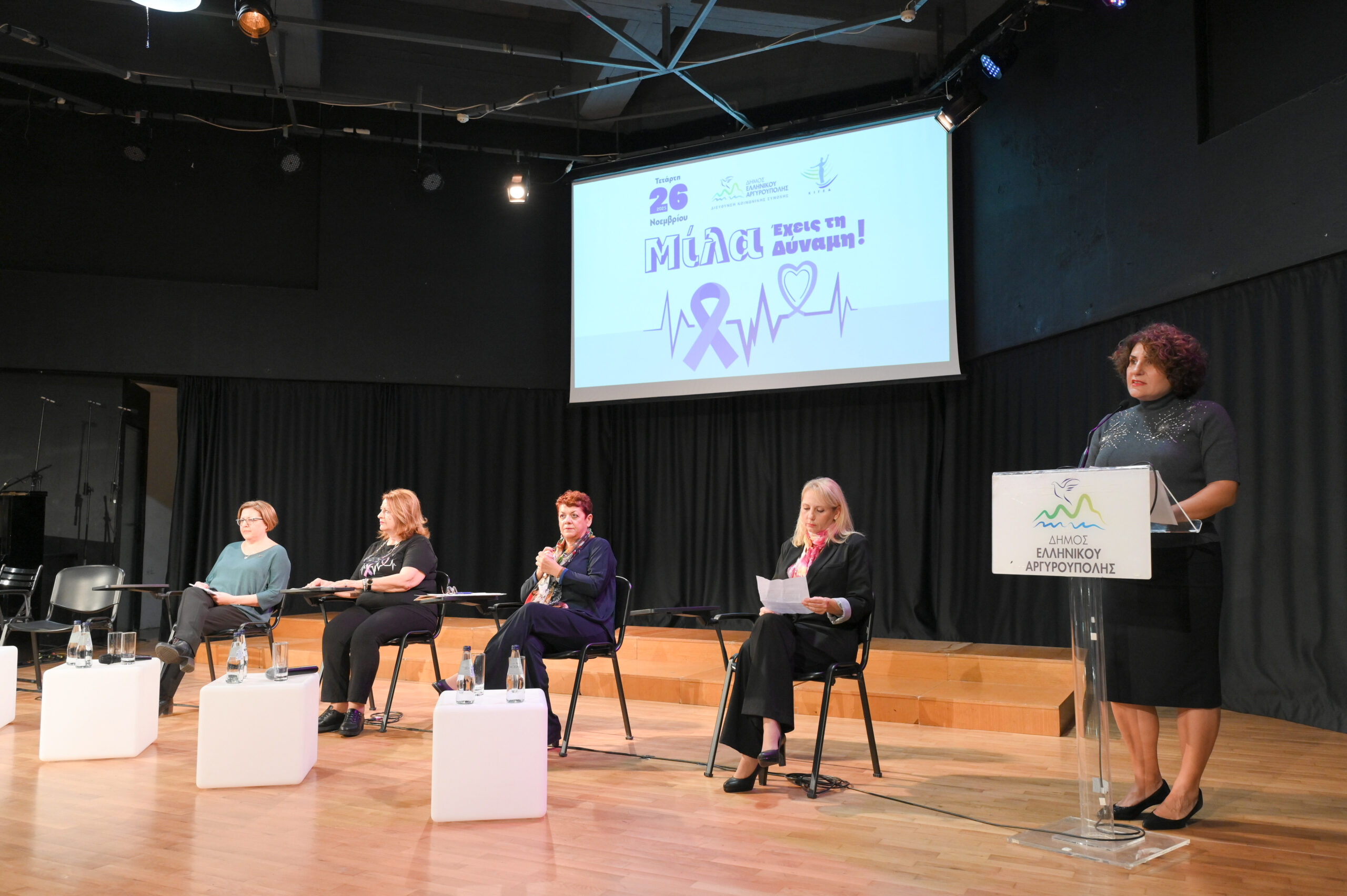 Μια βραδιά γεμάτη δύναμη, γνώση και ανθρώπινη ευαισθησία αγκάλιασε το Πολιτιστικό Κέντρο «Μίκης Θεοδωράκης» την Τετάρτη 26 Νοεμβρίου, στην εκδήλωση του Δήμου Ελληνικού – Αργυρούπολης για την Παγκόσμια Ημέρα Εξάλειψης της Βίας κατά των Γυναικών. Με τη συνεργασία της Διεύθυνσης Κοινωνικής Συνοχής, της Δημοτικής Επιτροπής Ισότητας, του Κέντρου Κοινότητας και της Κίνησης Γυναικών Ελληνικού – Αργυρούπολης (ΚΙ.ΓΕ.Α.), η πόλη έστειλε ένα ηχηρό μήνυμα ευαισθητοποίησης, πρόληψης και ενδυνάμωσης.