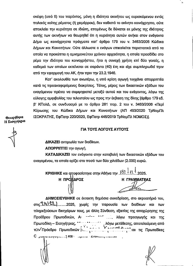 Συγκεκριμένα, με την υπ’ αριθμ. 3228/2025 απόφασή του, το Πολυμελές Πρωτοδικείο Αθηνών απέρριψε και την δεύτερη αγωγή, που ο Δήμος Γλυφάδας άσκησε σε βάρος μας με αίτημα την απόσπαση συγκεκριμένων εδαφικών εκτάσεων του Δήμου μας, όπως το γήπεδο Σουρμένων κ.α., προκειμένου να τα οικειοποιηθεί.