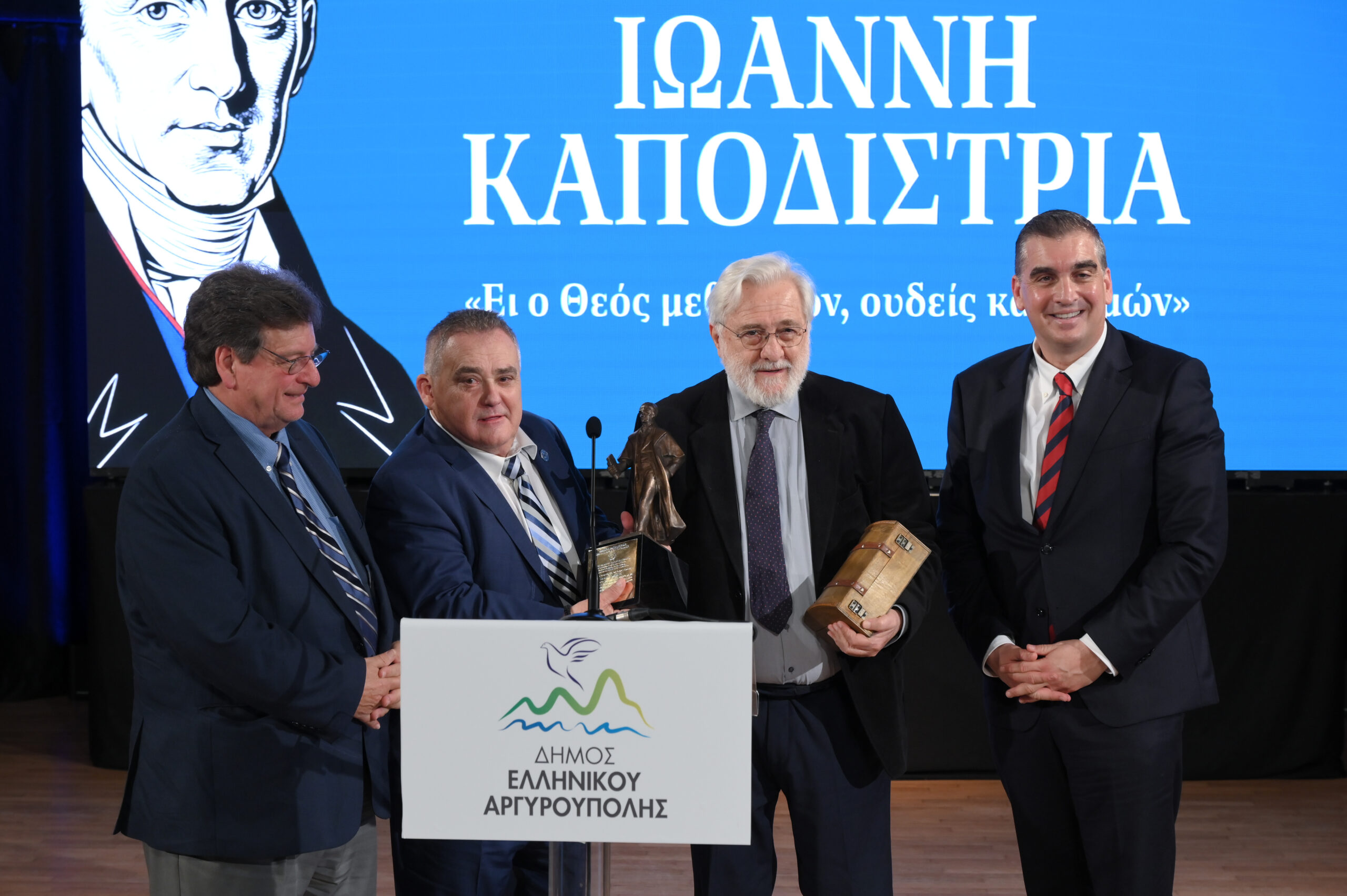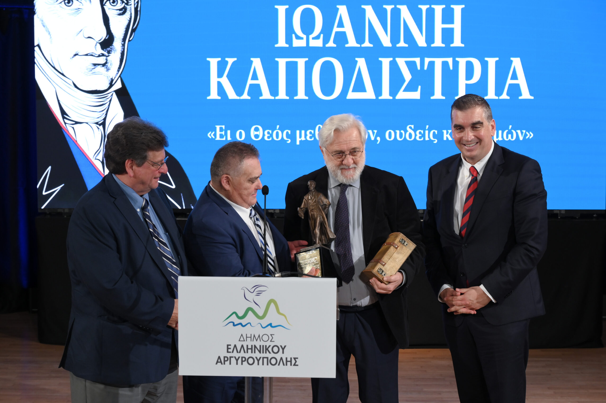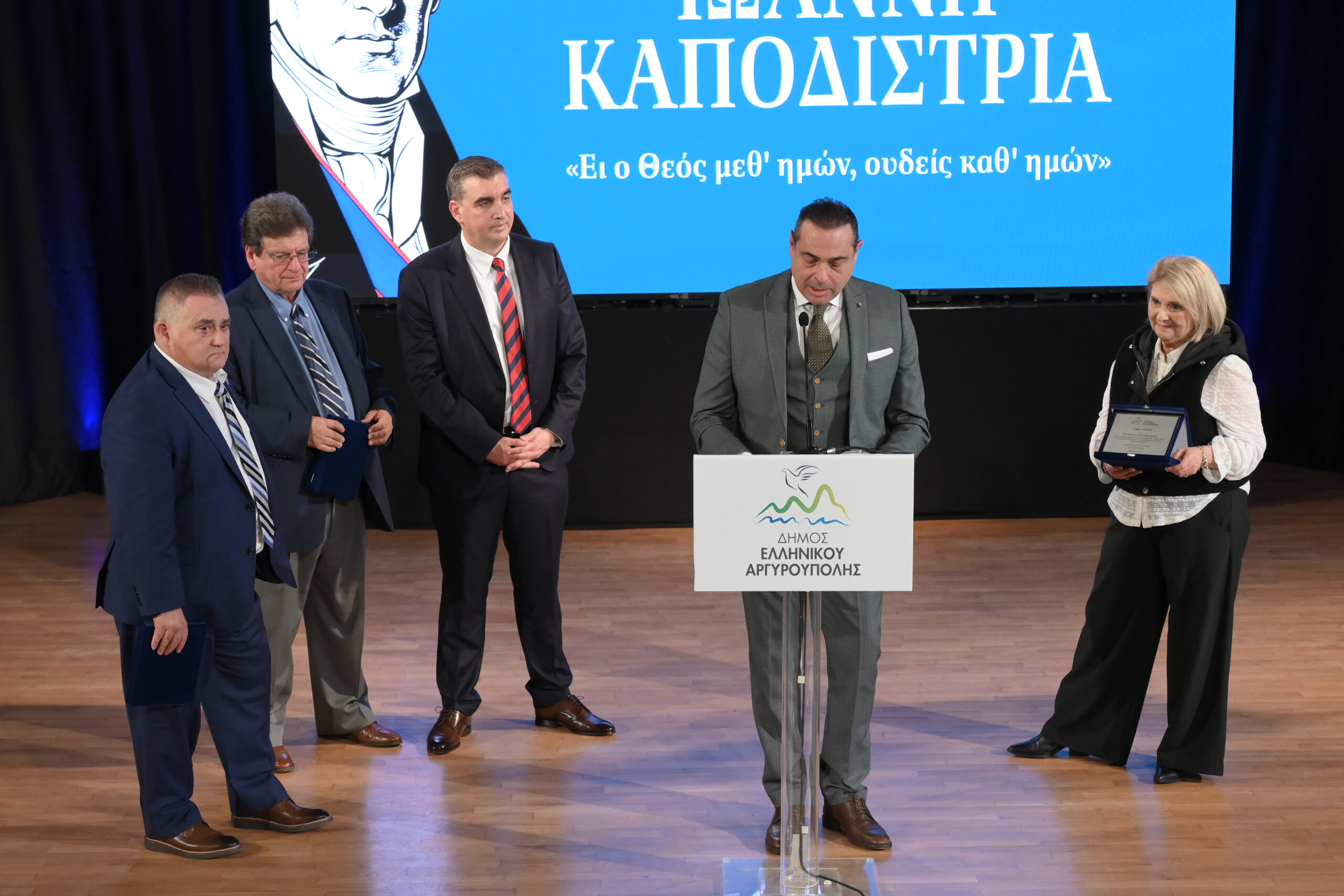 Τιμητική διάκριση παρέλαβαν επίσης εκπρόσωποι της Ελληνικής Ομογένειας και συγκεκριμένα ο Πρόεδρος του Ελληνοαμερικανικού Εθνικού Συμβουλίου κ. Βασίλης Ματαράγκας, ο Εκπρόσωπος της Παγκόσμιας Ομοσπονδίας Κεφαλλήνων & Ιθακησίων «ΟΔΥΣΣΕΥΣ» κ. Κώστας Βαγγελάτος και ο Εκπρόσωπος της Ιονίου Πολιτιστικής Ομοσπονδίας Αμερικής κ. Πατερουλάκης που συνέβαλαν τα μέγιστα με την πολύτιμη δωρεά του Ανδριάντα του Ιωάννη Καποδίστρια προς τον Δήμο Ελληνικού – Αργυρούπολης.