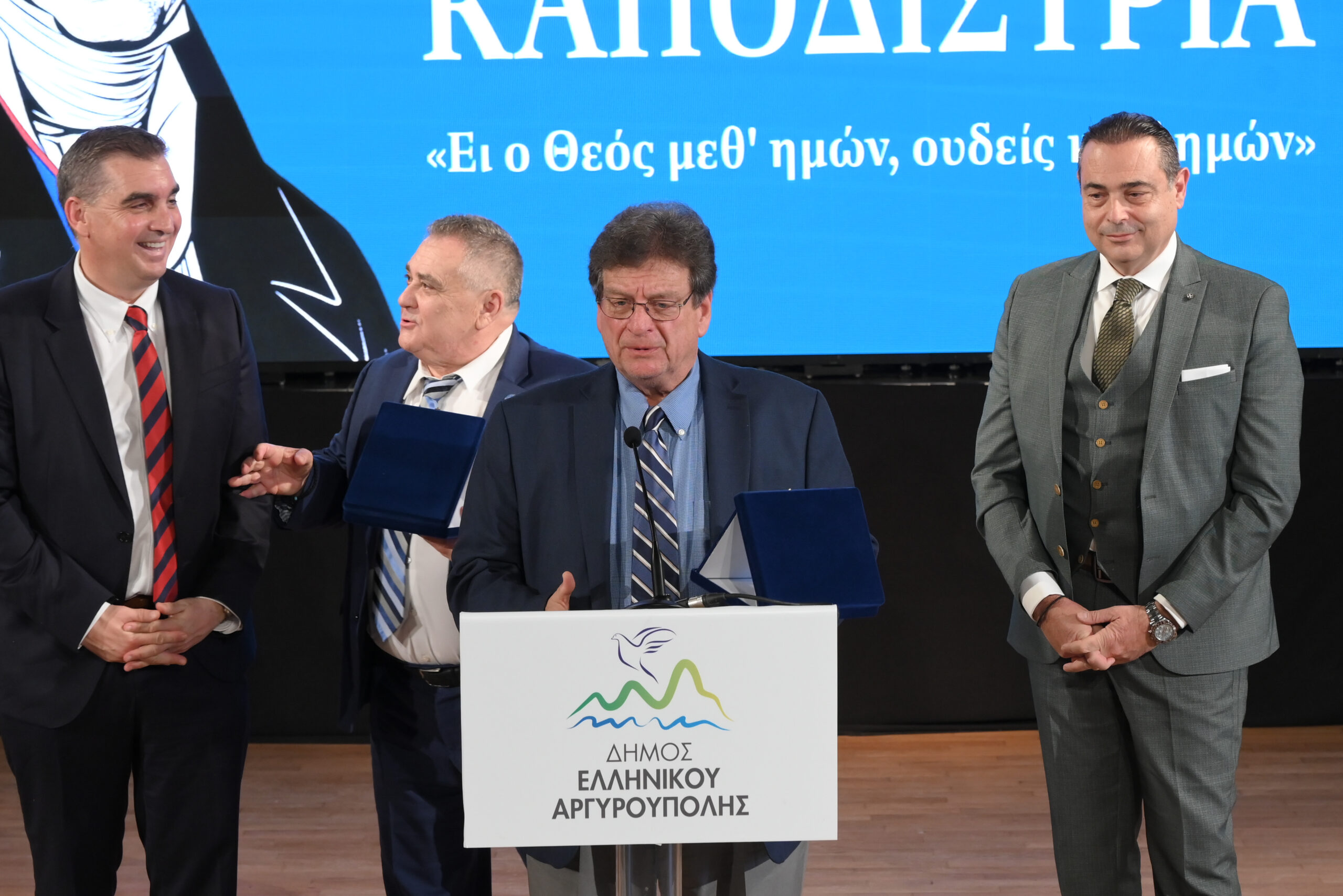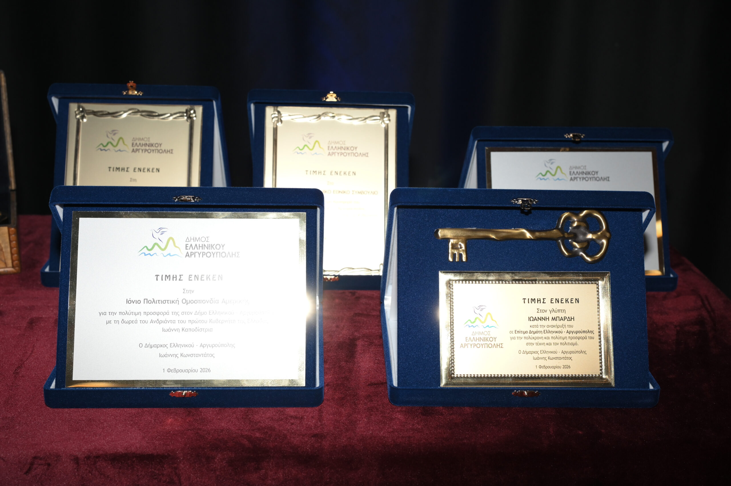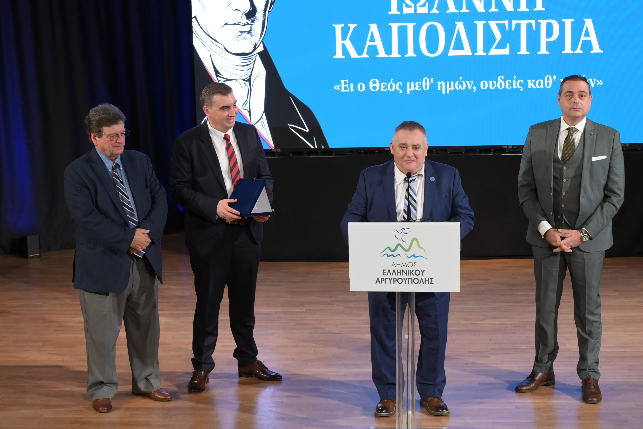 Τιμητική διάκριση παρέλαβαν επίσης εκπρόσωποι της Ελληνικής Ομογένειας και συγκεκριμένα ο Πρόεδρος του Ελληνοαμερικανικού Εθνικού Συμβουλίου κ. Βασίλης Ματαράγκας, ο Εκπρόσωπος της Παγκόσμιας Ομοσπονδίας Κεφαλλήνων & Ιθακησίων «ΟΔΥΣΣΕΥΣ» κ. Κώστας Βαγγελάτος και ο Εκπρόσωπος της Ιονίου Πολιτιστικής Ομοσπονδίας Αμερικής κ. Πατερουλάκης που συνέβαλαν τα μέγιστα με την πολύτιμη δωρεά του Ανδριάντα του Ιωάννη Καποδίστρια προς τον Δήμο Ελληνικού – Αργυρούπολης.