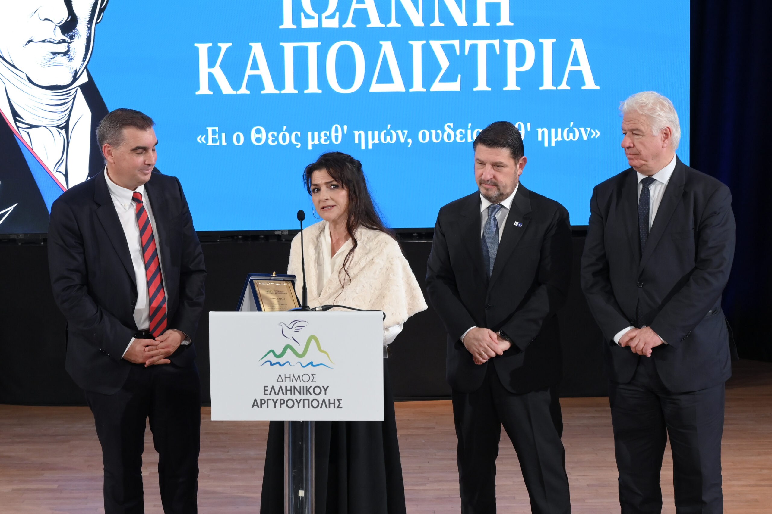 Παράλληλα, τιμήθηκε η τελευταία απόγονος του Ιωάννη Καποδίστρια, Ναταλία Καποδίστρια, η οποία δήλωσε: «Ευχαριστώ πολύ για την τιμή εκ μέρους της οικογένειάς μου. Άκουσα υπέροχα πράγματα και θέλω να τονίσω ότι όσο σημαντικό είναι να αναγνωρίζουμε την αξία του Ιωάννη Καποδίστρια, άλλο τόσο είναι να κρατάμε ένα μέτρο σε αυτή την μεγάλη ανάγκη να αναγνωρίσουμε την σπουδαιότητά του προκειμένου να μην αποποιούμαστε την ευθύνη που έχουμε σήμερα και πάντα ως πολίτες».