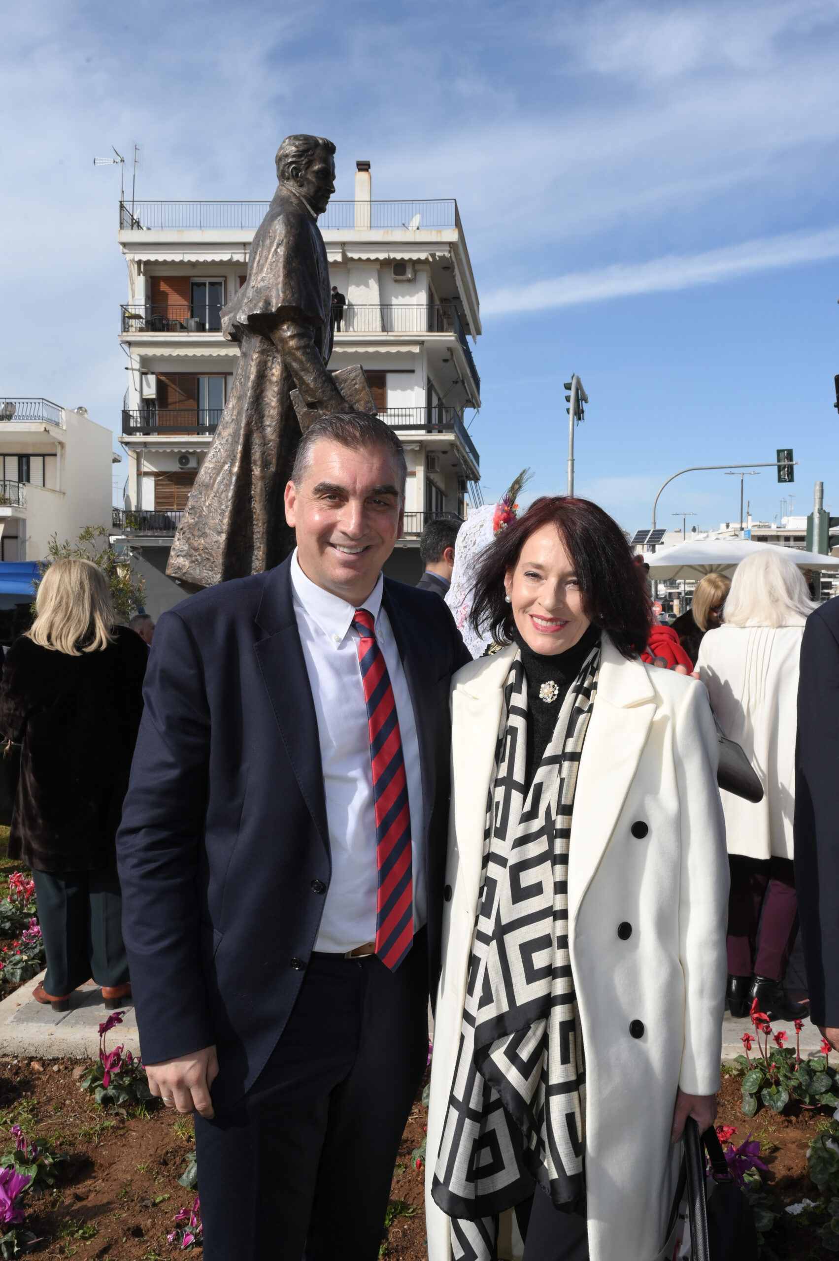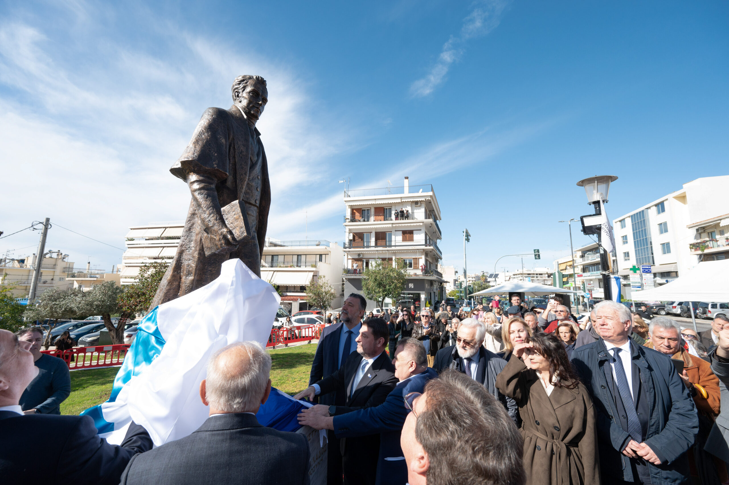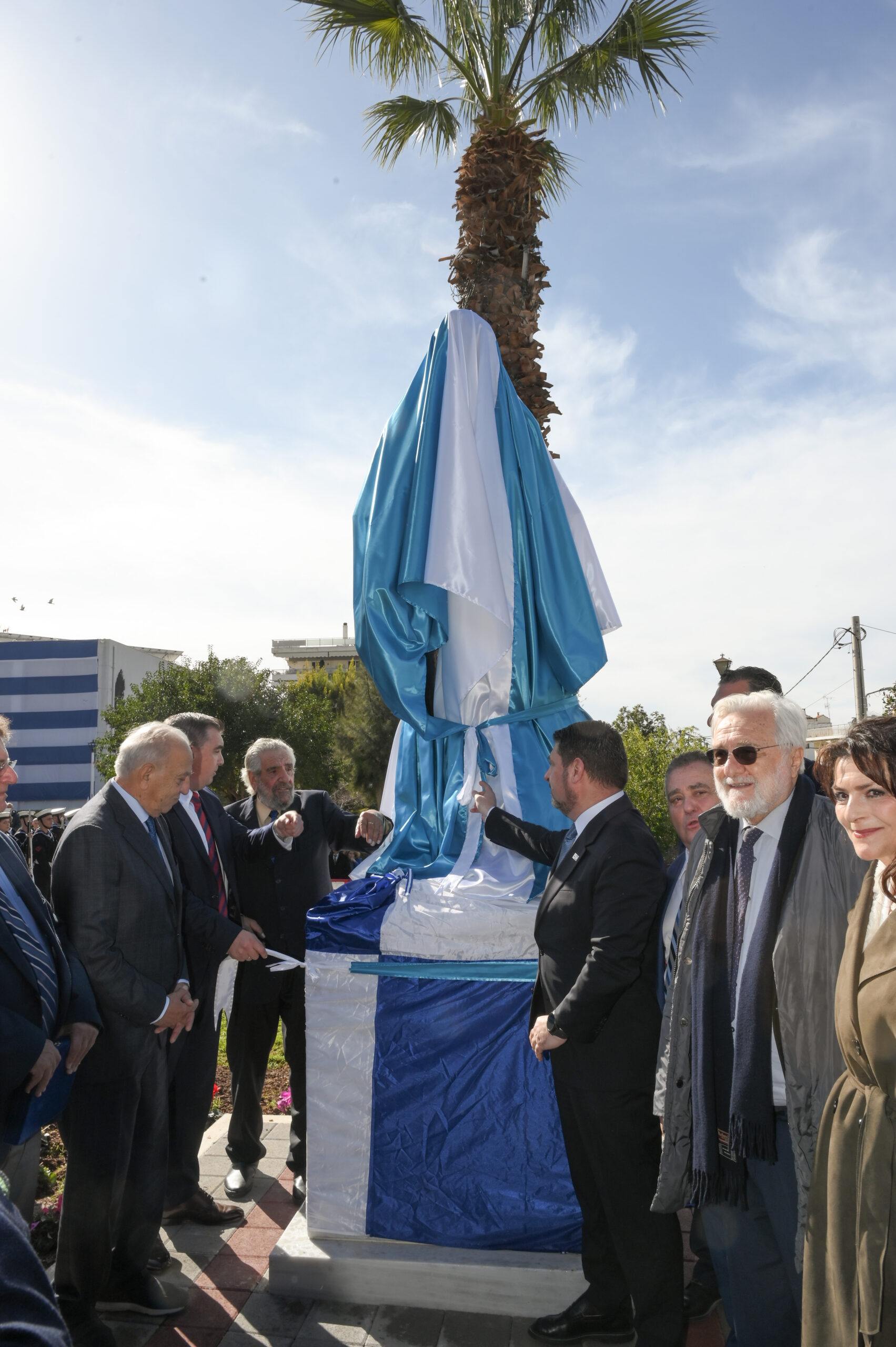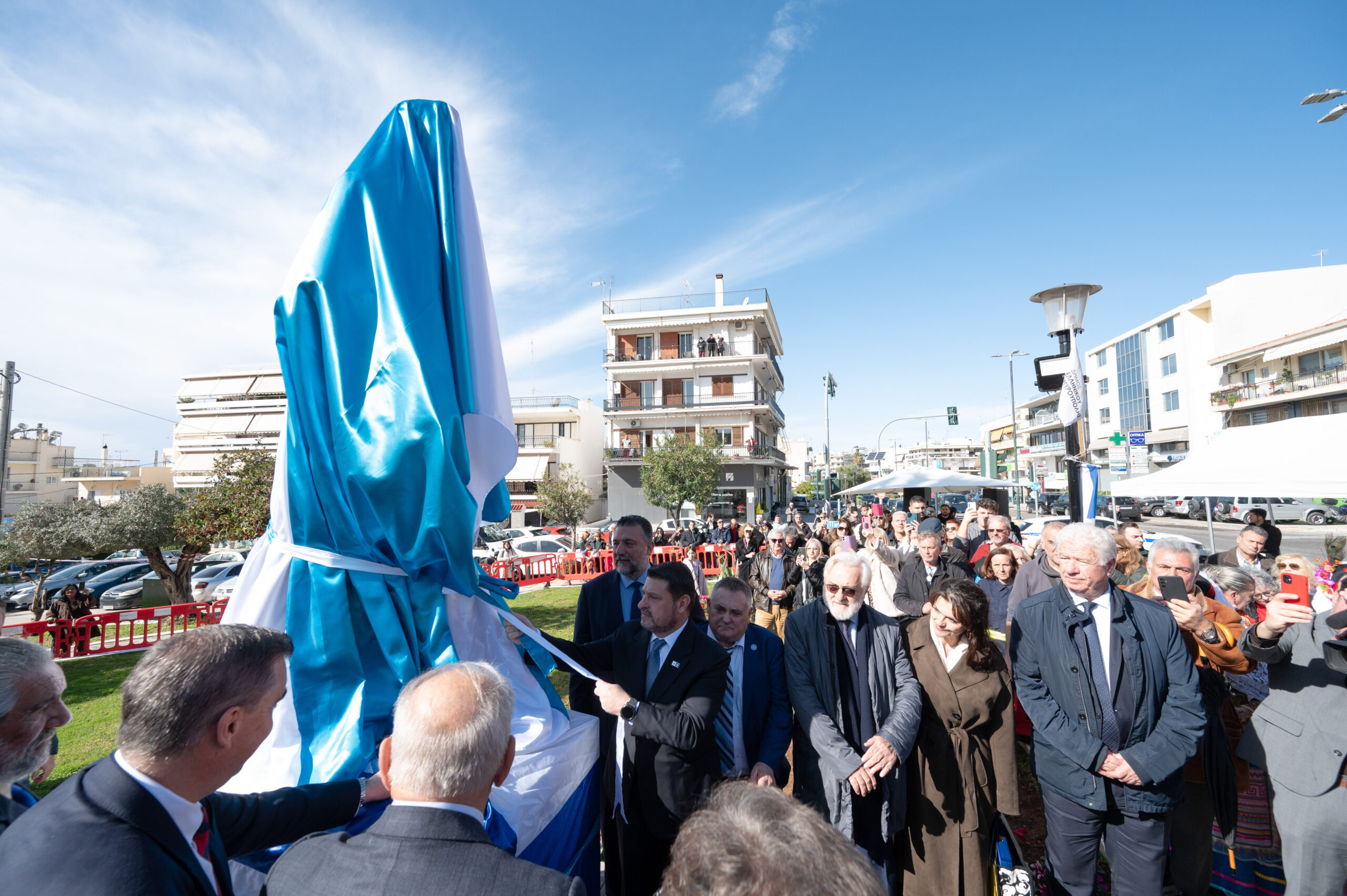 Με σύμμαχο τον ηλιόλουστο καιρό, πραγματοποιήθηκαν τα αποκαλυπτήρια του Ανδριάντα στην Πλατεία Δημαρχείου, παρουσία της Φιλαρμονικής του Πολεμικού Ναυτικού και με άγημα του Πολεμικού Ναυτικού να αποδίδει τιμές. Την επιμνημόσυνη δέηση τέλεσαν εκ μέρους του Σεβασμιώτατου Μητροπολίτη Νέας Σμύρνης ο πατήρ Θεόδωρος και ο Πατήρ Γεώργιος και εκ μέρους του Σεβασμιώτατου Μητροπολίτη Γλυφάδας ο Πατήρ Ανδρέας.