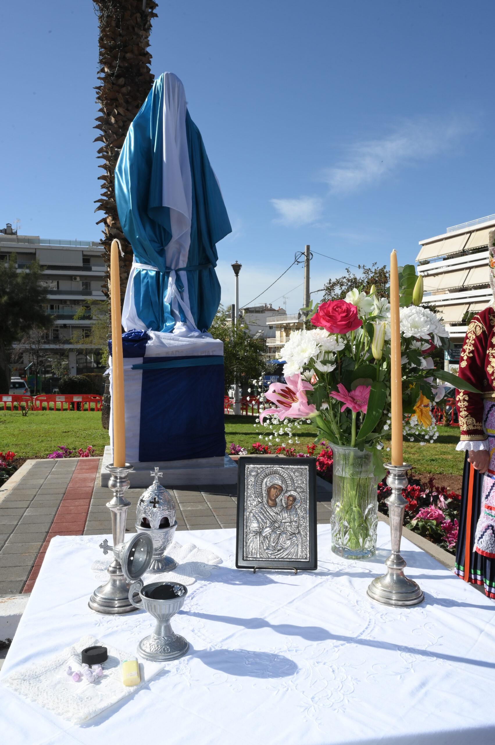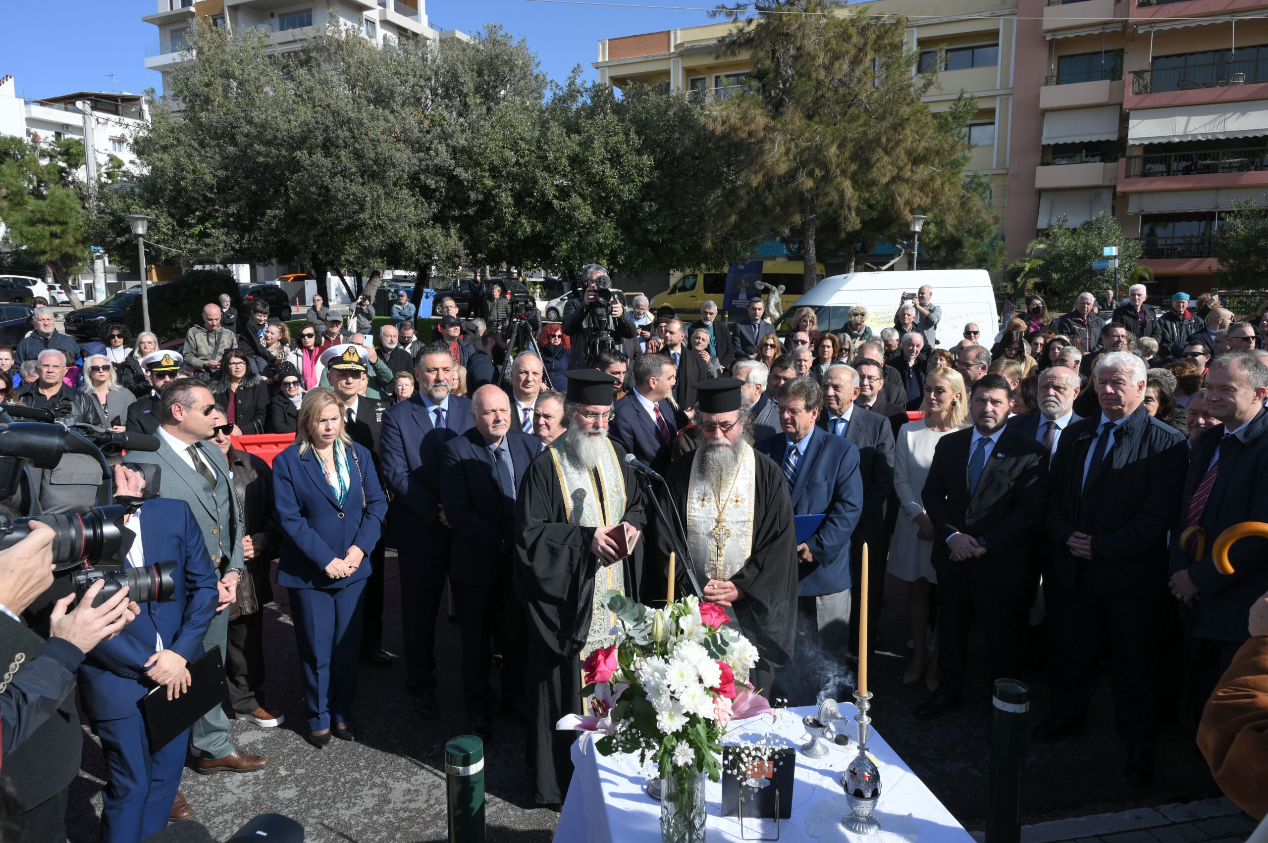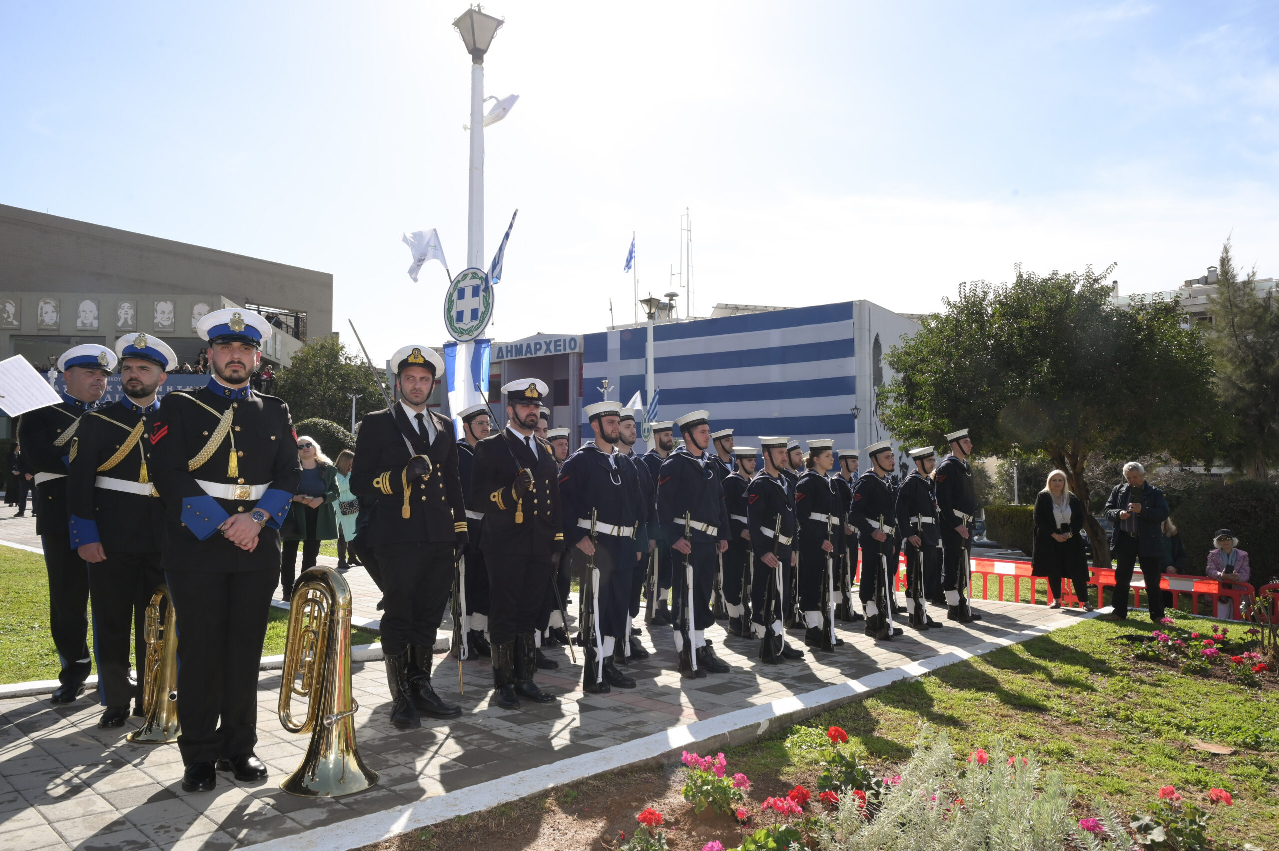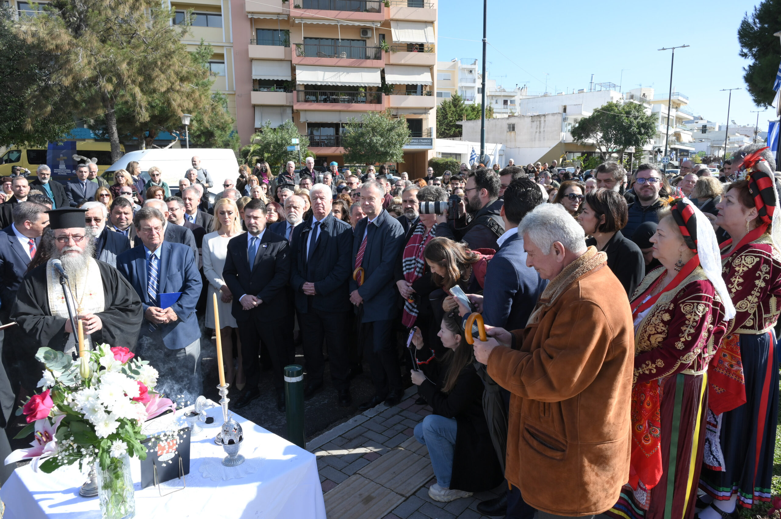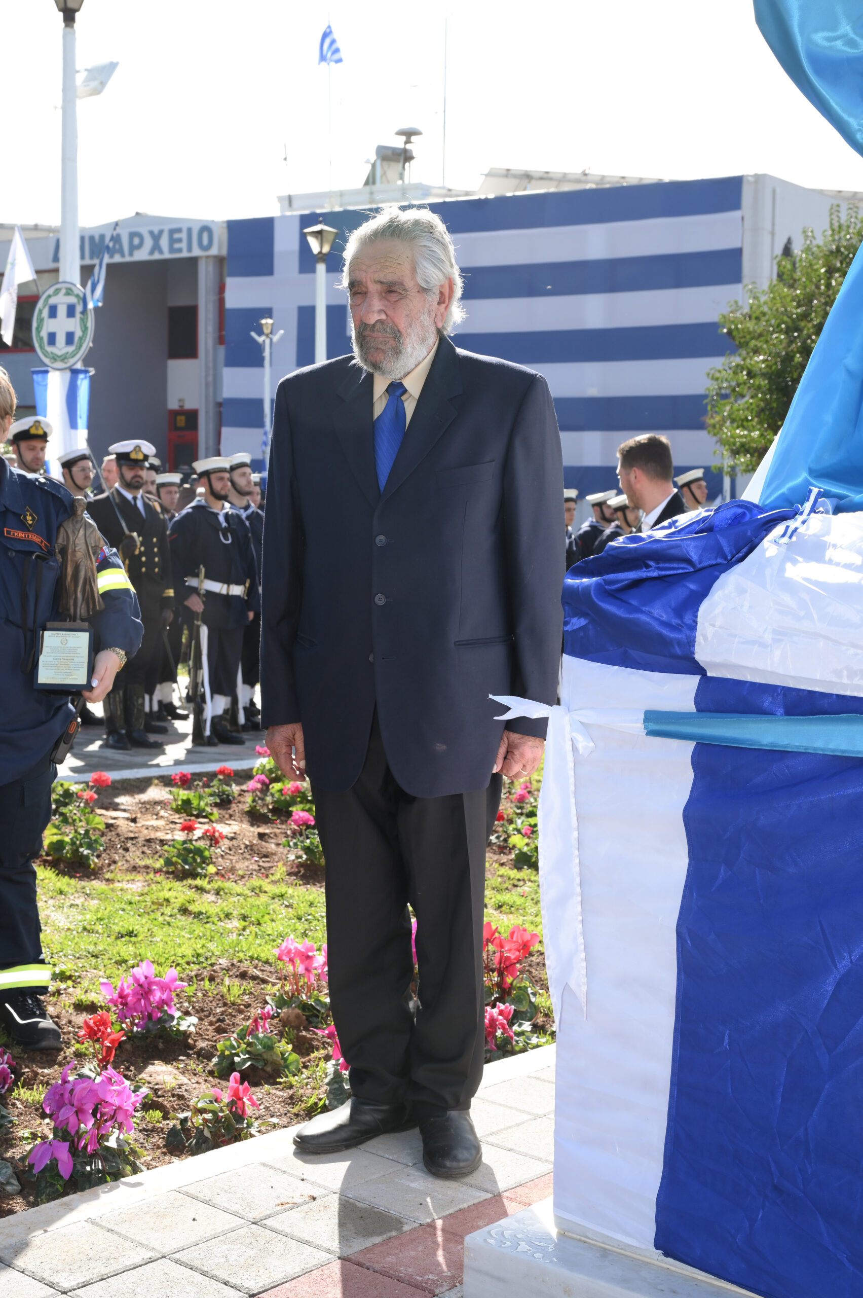 Με σύμμαχο τον ηλιόλουστο καιρό, πραγματοποιήθηκαν τα αποκαλυπτήρια του Ανδριάντα στην Πλατεία Δημαρχείου, παρουσία της Φιλαρμονικής του Πολεμικού Ναυτικού και με άγημα του Πολεμικού Ναυτικού να αποδίδει τιμές. Την επιμνημόσυνη δέηση τέλεσαν εκ μέρους του Σεβασμιώτατου Μητροπολίτη Νέας Σμύρνης ο πατήρ Θεόδωρος και ο Πατήρ Γεώργιος και εκ μέρους του Σεβασμιώτατου Μητροπολίτη Γλυφάδας ο Πατήρ Ανδρέας.